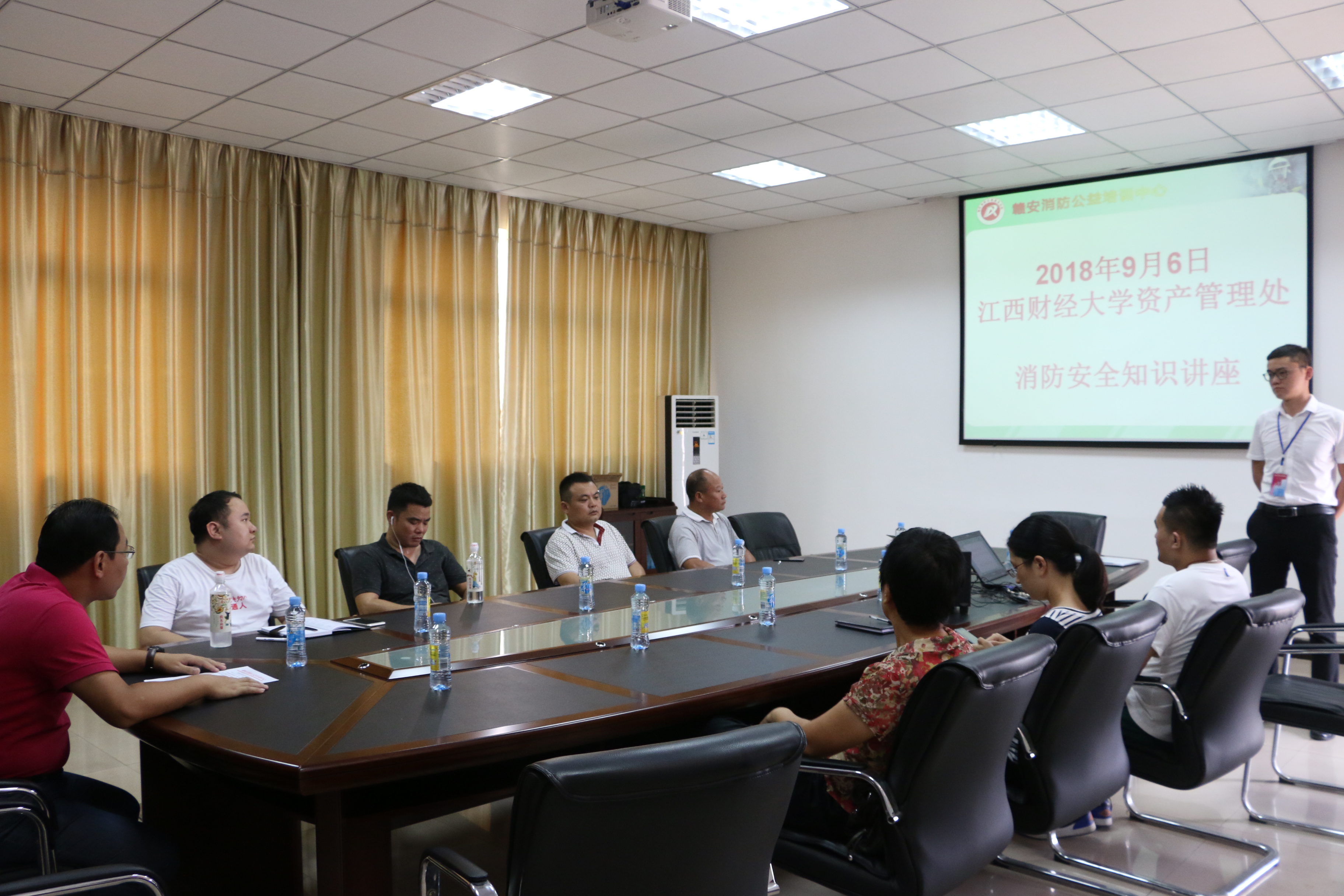 为提高职工消防安全意识、正确处理火警火情的应急能力,确保校园安全, 9月6日下午,我处邀请了赣安消防培训中心的胡帆教官来我处讲授消防安全知识。培训会由张克副处长主持,资产管理处全体教职员工和部分校经营商户代表参加。