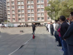 喻冬冬结合近期省内外几起重特大火灾事故案例,分析火灾发生的原因,讲解火灾的预防、火灾的逃生等知识,普及了灭火器的种类型号、有效期等常识,并现场示范了干粉灭火器及消防水带的正确使用方法,随后组织现场所有培训人员进行了灭火器扑灭初期火灾的实操练习。大家在喻冬冬的指导下,突破面对火情时的“恐慌”心理,按照提、拔、握、压的使用要领操作,切身体验使用灭火器材的操作方法,进一步锻造现场临危不乱的心理素质。