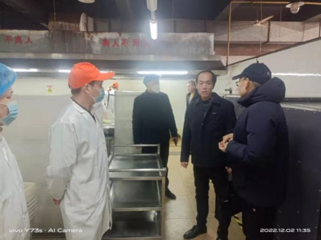 为提升枫林园校区师生对食堂供应饭菜品质及餐饮服务的满意度,12月2日,后勤与资产管理处处长肖建文带队调研检查枫林园食堂的食品安全卫生工作和膳食服务工作,副处长姜瑜、膳食服务科科长利忠随同调研检查。