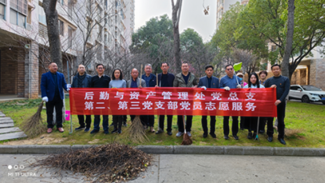 阳春三月,春光明媚。在“学雷锋活动月”到来之际,3月2日下午,后勤与资产管理处党总支第二、第三党支部组织党员同志,在南区专家楼宿舍区开展了一次志愿大清扫活动。大家干劲十足,劳动场面热烈,令人鼓舞。