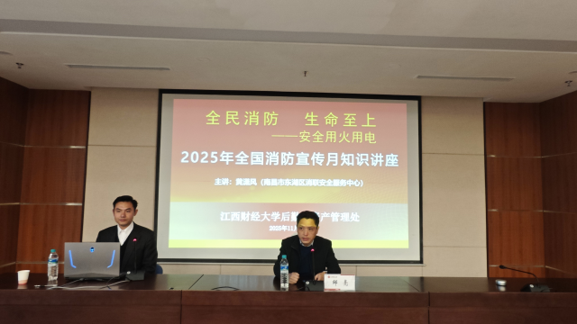 为切实强化后勤服务人员的消防安全意识,提升火灾防控与应急处置能力,保障校园财产及师生生命安全,2025年11月20日下午,后勤与资产管理处在图文信息大楼三号报告厅召开消防安全培训讲座。会议由处副处长邹亮主持,所有食堂、维修、水电、物业等核心岗位从业人员全员参训,特邀南昌市消联安全服务中心讲师黄潇风老师现场授课。