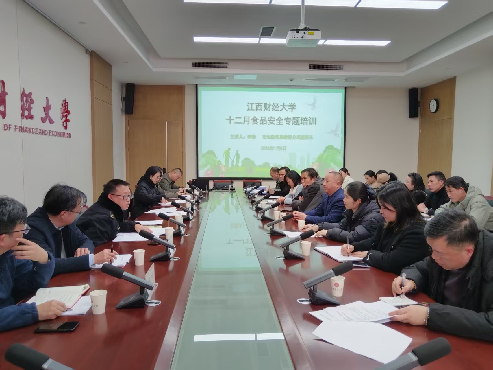 1月8日下午,学校召开2025年12月份校园食品安全月调度会,旨在进一步强化校园食品安全主体责任,提升管理水平与风险防范能力,确保校园食品安全。副校长贺丹君出席会议并讲话,南昌市市场监管局蛟桥分局副局长李梁作专题培训。会议由后勤与资产管理处姜瑜主持。