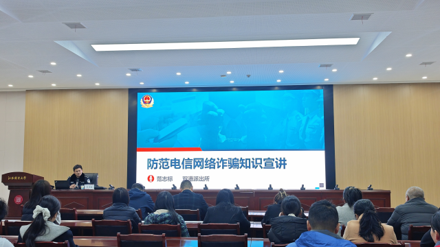 为进一步强化后勤系统全体从业人员的防诈反诈意识,筑牢校园安全防线,切实守护教职工及从业人员的财产安全,3月11日,后勤与资产管理处特邀请辖区派出所范志标警官来校,开展电信网络诈骗防范宣传讲座。全处教职工、校园物业及食堂等后勤从业人员共计百余人参加讲座,会议由分管平安建设工作的姜瑜同志主持。